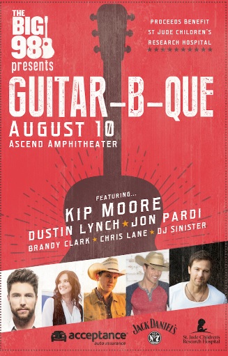 KIP MOORE, DUSTIN LYNCH, JON PARDI, BRANDY CLARK, CHRIS LANE, AND DJ SINISTER are set to perform WEDNESDAY, AUGUST 10th at NASHVILLE’s ASCEND AMPITHEATER for iHEARTMEDIA Country WSIX (THE BIG 98)/NASHVILLE’s annual GUITAR-B-QUE concert.