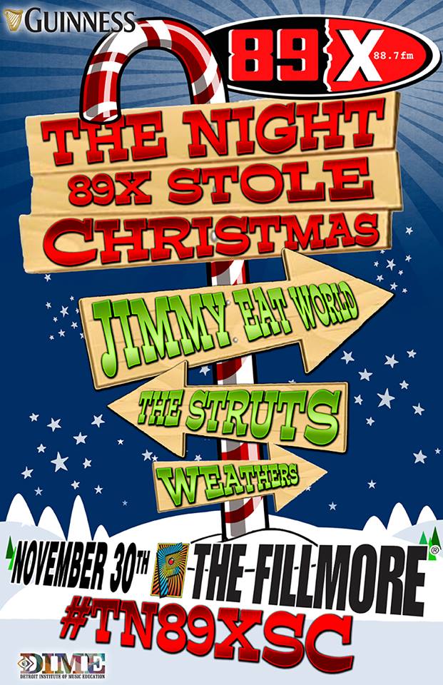 BELL MEDIA Alternative CIMX (89X)/WINDSOR-DETROIT announces "THE NIGHT 89X STOLE CHRISTMAS" will be WEDNESDAY, NOVEMBER 30th at THE FILLMORE DETROIT with JIMMY EAT WORLD, THE STRUTS and WEATHERS.