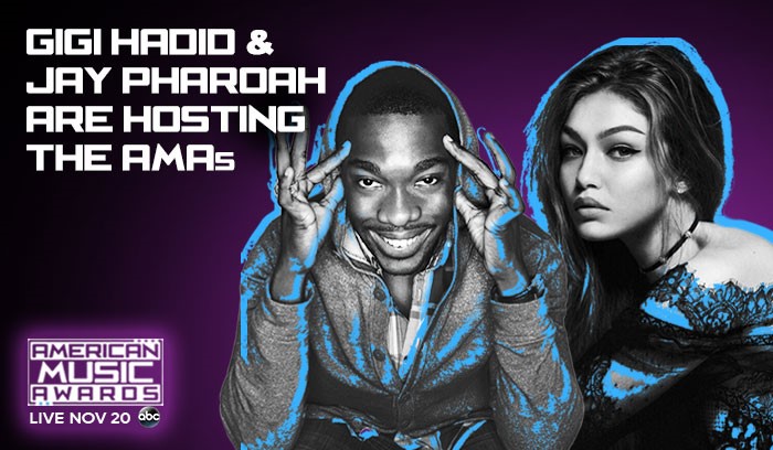 “I’m so excited to host the 2016 AMAs with JAY PHAROAH,” said HADID. “JAY is known for his spot-on impressions so I can’t wait to take the stage with him to show my goofy side and celebrate this year’s nominees!”