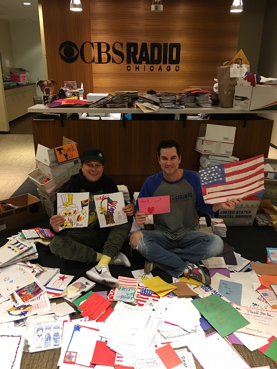 Kudos to CBS RADIO Country WUSN (US 99)/CHICAGO morning show hosts STYLZ and ROMAN, who have collected 25,000 letters – surpassing their goal of 10,000 – to send overseas to AMERICAN troops. WUSN partnered with GREAT LAKES NAVAL BASE to collect holiday greetings for active military that are on duty during the holidays, and STYLZ and ROMAN have been soliciting WUSN listeners on the air and via social media with the hashtag #10000ForTheTroops.