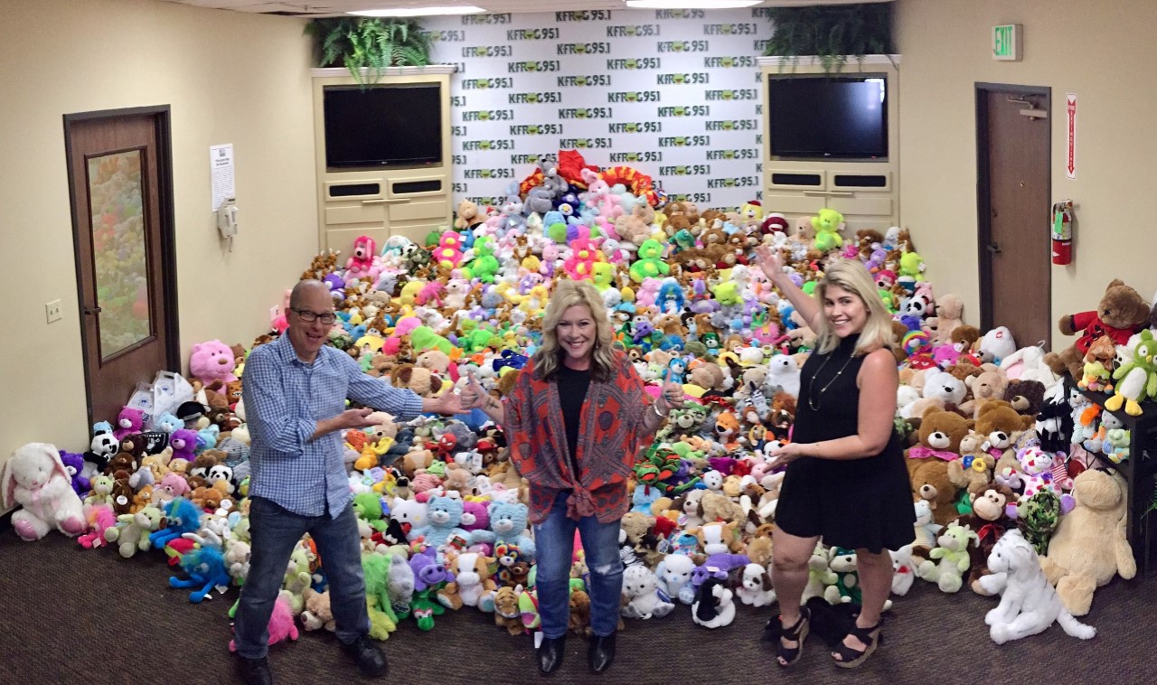 CBS RADIO Country KFRG (95.1 K-FROG)/RIVERSIDE, CA morning show "SCOTT, HEATHER AND KELLI IN THE MORNING," collected over 1,000 teddy bears in less than 24 hours this WEEK.