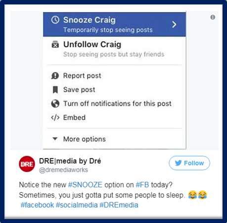 CUMULUS and WESTWOOD ONE VP/Social and MERGE author LORI LEWIS writes, "The time has come where we will soon get to put our excessively chatty friends or Pages we’ve 'liked' on snooze.