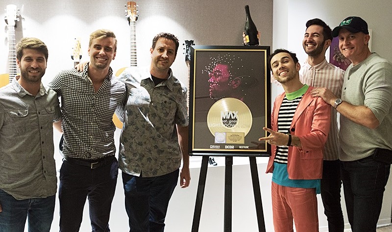 (L-R) Crush Management's Ian Planet, Will Tenney, Dan Kruchkow, with MAX, guitarist Ryan Siegel and Crush's Erik Olesen MAX broke into the mainstream scene with the success of his single "Gibberish" featuring HOODIE ALLEN - the song was one of the selected tracks featured by YOUTUBE for their 2015 Music Awards, and its groundbreaking music video was one of the only videos ever featured on the GOOGLE.com homepage. Additionally, he was one of MTV's Artists to Watch, named ELVIS DURAN's "Artist of the Month," KIIS-FM 's "Artist of the Week," performed on NBC's TODAY show, has toured with FALL OUT BOY & WIZ KHALIFA, GNASH and has opened for DIPLO.