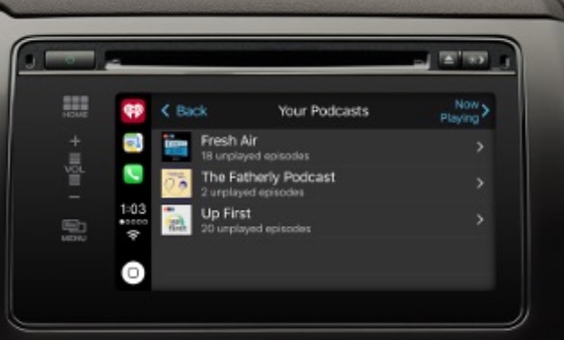 iHEARTRADIO podcasts are now available through APPLE CarPlay.