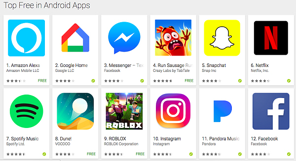 Here's the top-12 apps on ANDROID this CHRISTMAS: