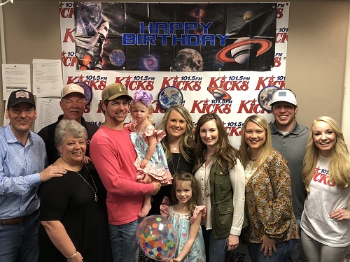 WKHX morning co-hosts CADILLAC JACK and ALI MAC hosted LILY GRACE and eight of her family members in studio for a party tailored just to her, complete with outer space decorations, birthday donuts and cake, a spaceship pinata, and birthday phone calls from artists including WARNER BROS./WEA's DEVIN DAWSON. "It's LILY GRACE's last year in the single digits, [and] she deserves whatever kind of birthday party she wants," said MAC. "We're lucky she wanted a KICKS 101.5 party!"