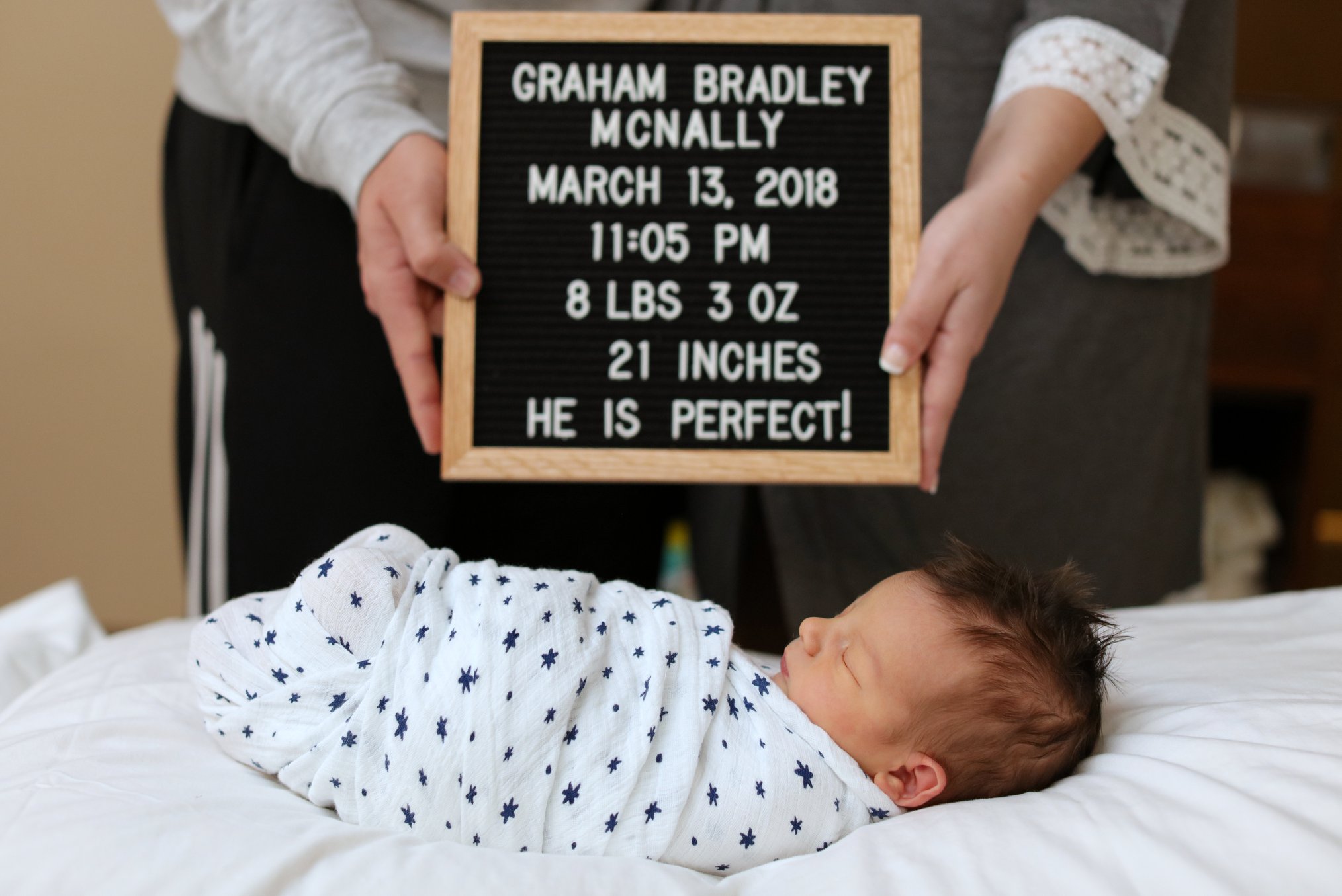 "With [a] full head of hair and his mama's eyes," shared MCNALLY via FACEBOOK. Congratulate the MCNALLY family here.