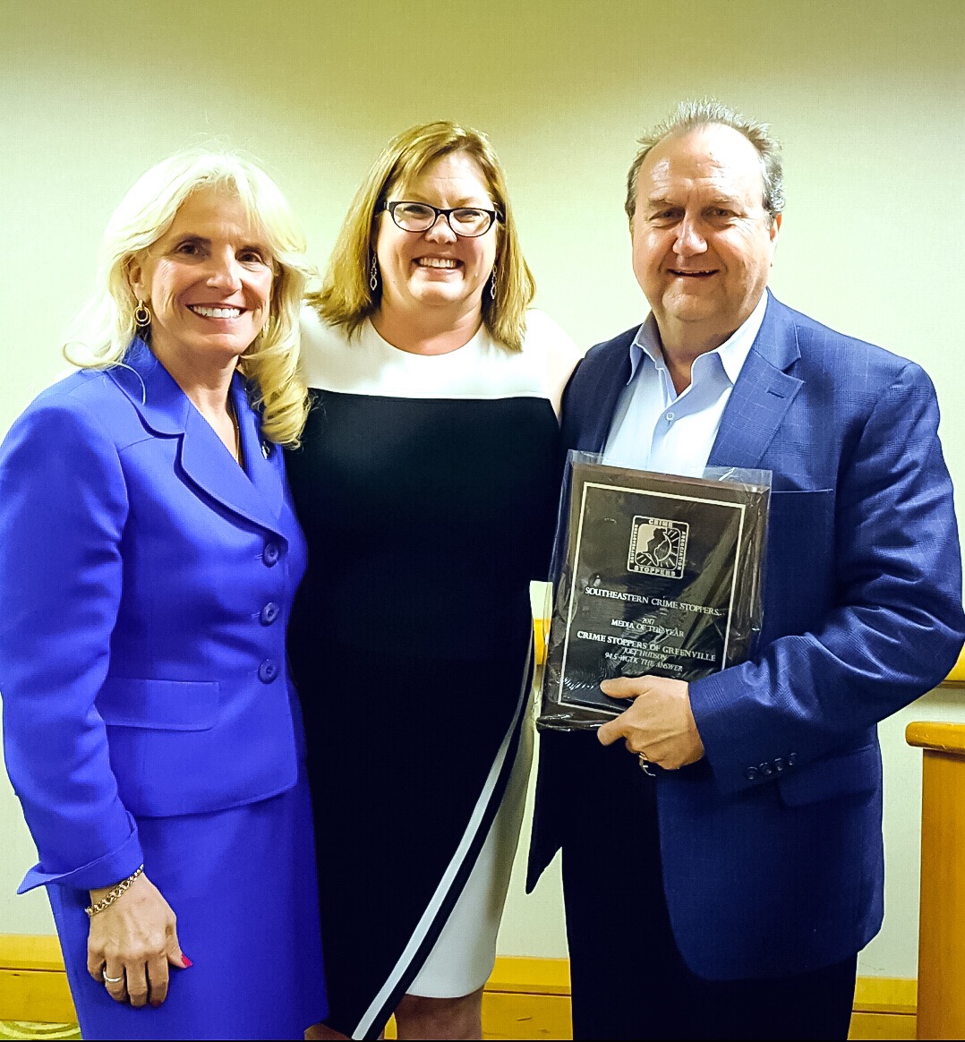 SECS President Trish Route, Crime Stoppers of Greenville's Lynda Leventis Wells, Hudson