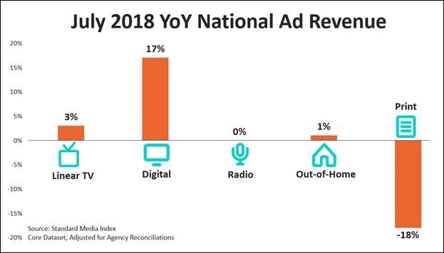 STANDARD MEDIA INDEX has unveiled national advertising revenue figures for JULY 2018. The National Advertising market gained 10% YoY, when factoring out the World Cup.
