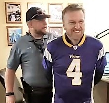 Kudos to TRENDING MEDIA Country KXIA (KIX 101.1)/MARSHALLTOWN, IA PD/afternoon host JD JUSTICE, who was "arrested" on-air for aggravating CHICAGO BEARS fans in support of the MINNESOTA VIKINGS. Watch JUSTICE get taken into custody by Officer COLE of the MARSHALLTOWN POLICE DEPARTMENT here.