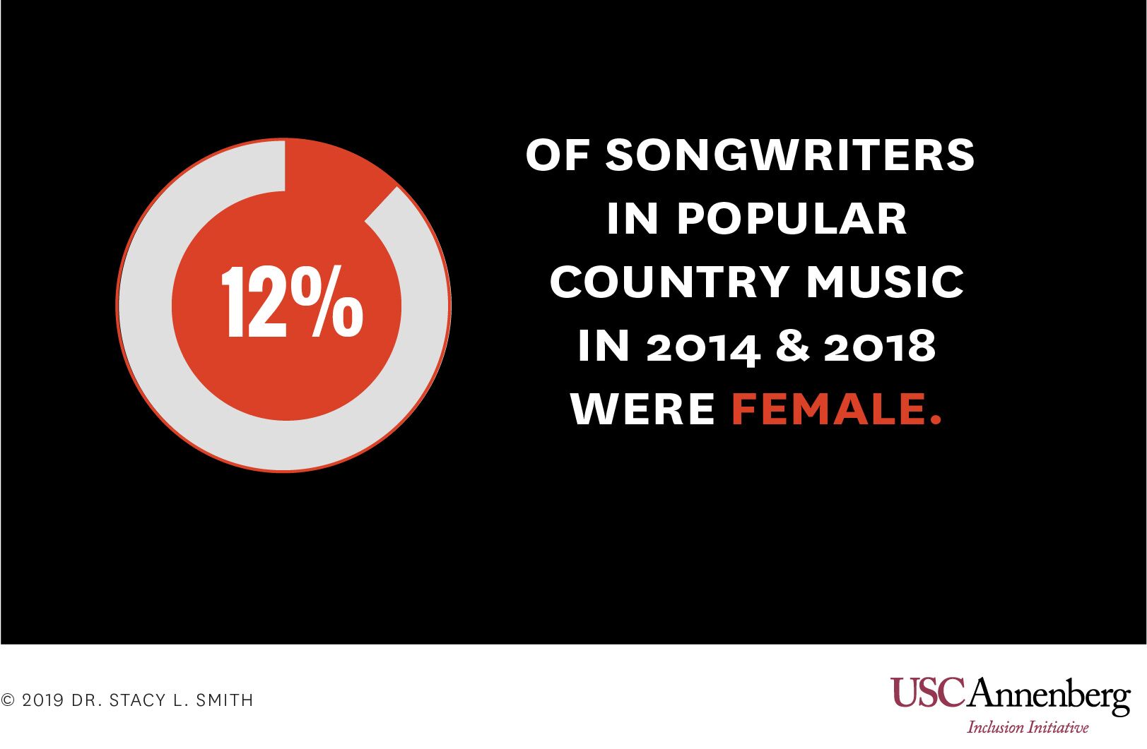 • 16% of artists across 500 top Country songs from 2014 to 2018 were female.