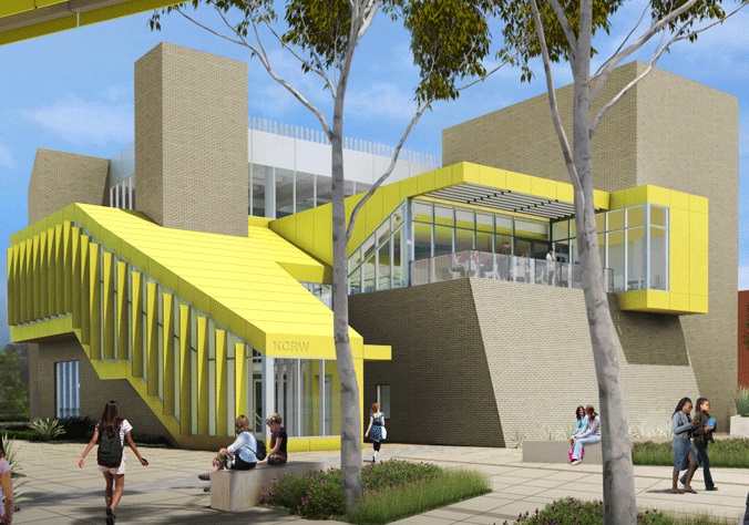 SANTA MONICA COLLEGE’s News/Talk/Music radio station has moved into a brand-new MEDIA CENTER. The 34,000-square-foot facility cost $38 million to build.