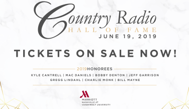 Tickets go on sale today for Country Radio Broadcasters' (CRB) 2019 “Country Radio Hall Of Fame Induction Dinner And Awards” ceremony, which will take place on WEDNESDAY, JUNE 19th at the NASHVILLE MARIOTT at VANDERBILT UNIVERSITY at 6p (CT). Individual tickets are available for $150 each, and tables cost $2,500.