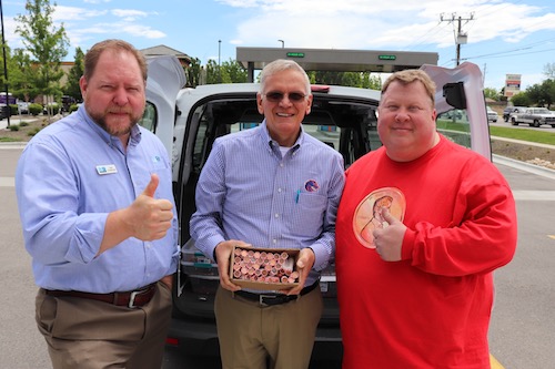 Cap Ed Credit Union's Todd Christensen, Boise Rescue Mission's Rev. Bill Roscoe, Miller