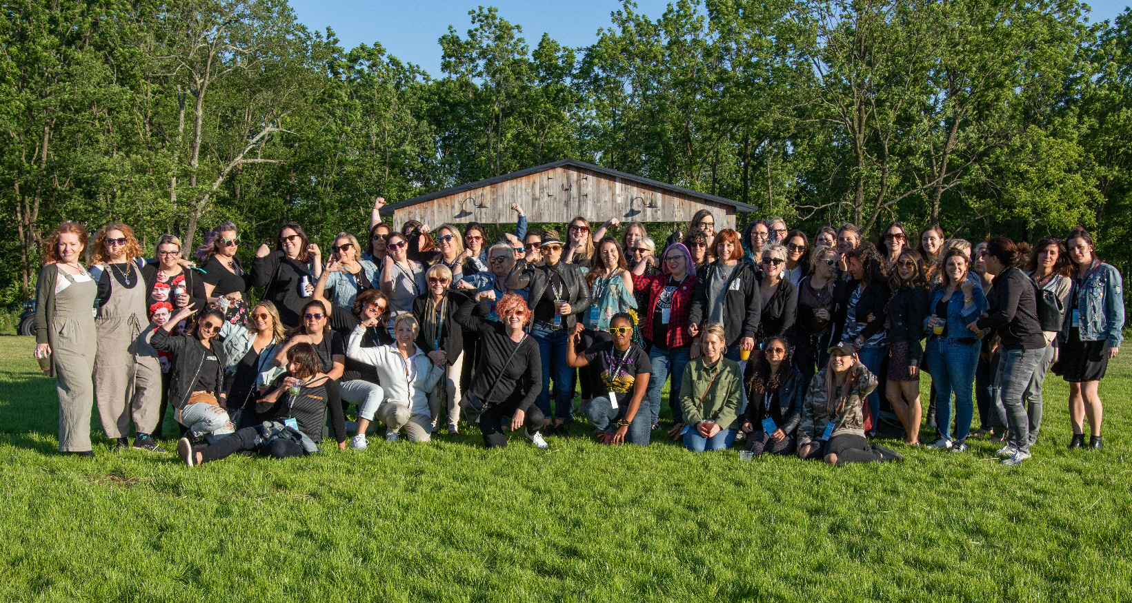Check out all the women in Alternative Radio gathered for a group photo on the lawn at Jeptha Creed. (Photo by Kara Robinson Photography)