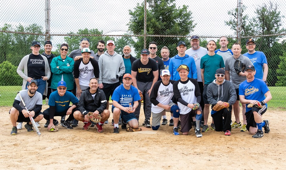 The Gathering 2019 unsigned collector's edition All-Star industry softball photo (Back row, l-r) Steph Harty/MadHank, Dave Sikorski/Earmilk, Lesley James/East City Management, Robbie Lloyd/Interscope, Jeff Ballard/Nettwerk, Doug DeLuca/NFL, BJ Olin/band manager, John Boulos/Arista, Will Rusch/Lease-A-Local, Buddy Deal/Hollywood, Scott Burton/RED Music, Dave Lombardi/In2une, Bill Rusch/Lease-A-Local, Howard Petruziello/Red Light Management, Jonathan Jacobs/Arista, Tom Schmall/Red Light Management, Mike Jones/WWDC-Washington; Front row, (l-r) Andy Harms/KYSR-Los Angeles, band manager Bruce Ravid, Greg Dorfman/Elektra, Johnny Maze/WQRV-Huntsville, Chuck Oliner/Big Dog Marketing, Aaron Axelson/KITS-San Francisco, Steve Dent/WZDA-Dayton, and Dayton Kane/WWWX-Appleton-Oshkosh. (Photo by Kara Robinson Photography)