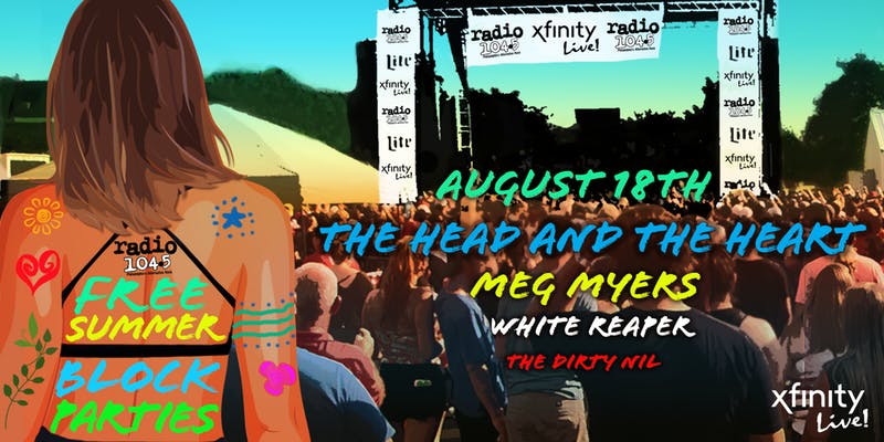 iHEARTMEDIA Alternative WRFF (RADIO 104.5)/PHILADELPHIA released its SUNDAY, AUGUST 18th lineup for the 10th Annual series of "RADIO 104.5’S FREE SUMMER BLOCK PARTIES" featuring THE HEAD AND THE HEART, MEG MYERS, WHITE REAPER and THE DIRTY NIL at XFINITY LIVE!