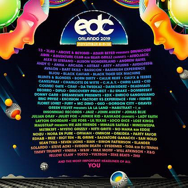 Over 100 dance music artists from around the world will perform at the expanded ELECTRIC DAISY CARNIVAL ORLANDO, which will be held over three days, NOV. 8th-10th, at TINKER FIELD in ORLANDO. On top of big names such as ALISON WONDERLAND, CHARLOTTE DE WITTE, NORA EN PURE, KASKADE, FISHER, DJ SNAKE, DIPLO, LOCO DICE, MSTRKRFT, REZZ, ZHU, DEADMAU5, YELLOW CLAW and STEVE AOKI, EDC ORLANDO will stage the debut of more than 20 artists including ANNA, CRAY, FISHER, GORGON CITY, I_O, NORA EN PURE, SAN HOLO, ZHU and more.