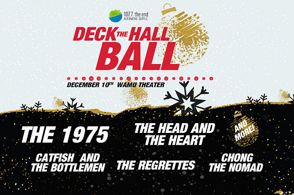 ENTERCOM Alternative KNDD (107.7 THE END)/SEATTLE will present its annual DECK THE HALL BALL on DECEMBER 10th at the WAMU THEATER in SEATTLE. Performing will be THE 1975, THE HEAD AND THE HEART, CATFISH AND THE BOTTLEMEN, THE REGRETTES, Locals Only artist CHONG THE NOMAD and more.