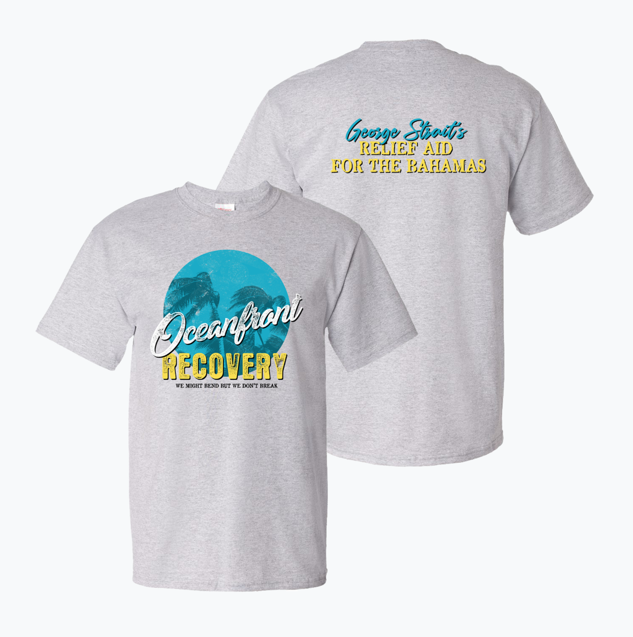 The t-shirt’s clever design changes the title of STRAIT’s 1987 hit, “Ocean Front Property,” to instead say, “Oceanfront Recovery,” with colors of the BAHAMIAN flag. It is available for pre-order here, with shipments beginning the week of NOVEMBER 4th.