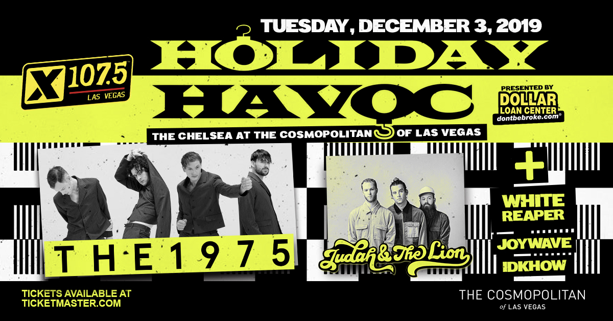 ENTERCOM Alternative KXTE (X107.5)/LAS VEGAS announces its annual holiday bash, "X107.5's HOLIDAY HAVOC," will be TUESDAY, DECEMBER 3rd at THE CHELSEA AT THE COSMOPOLITAN OF LAS VEGAS with THE 1975, JUDAH & THE LION, WHITE REAPER, JOYWAVE, and iDKHOW.
