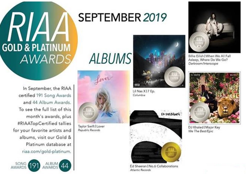 RIAA Certifies 191 Song And 44 Album Awards In September