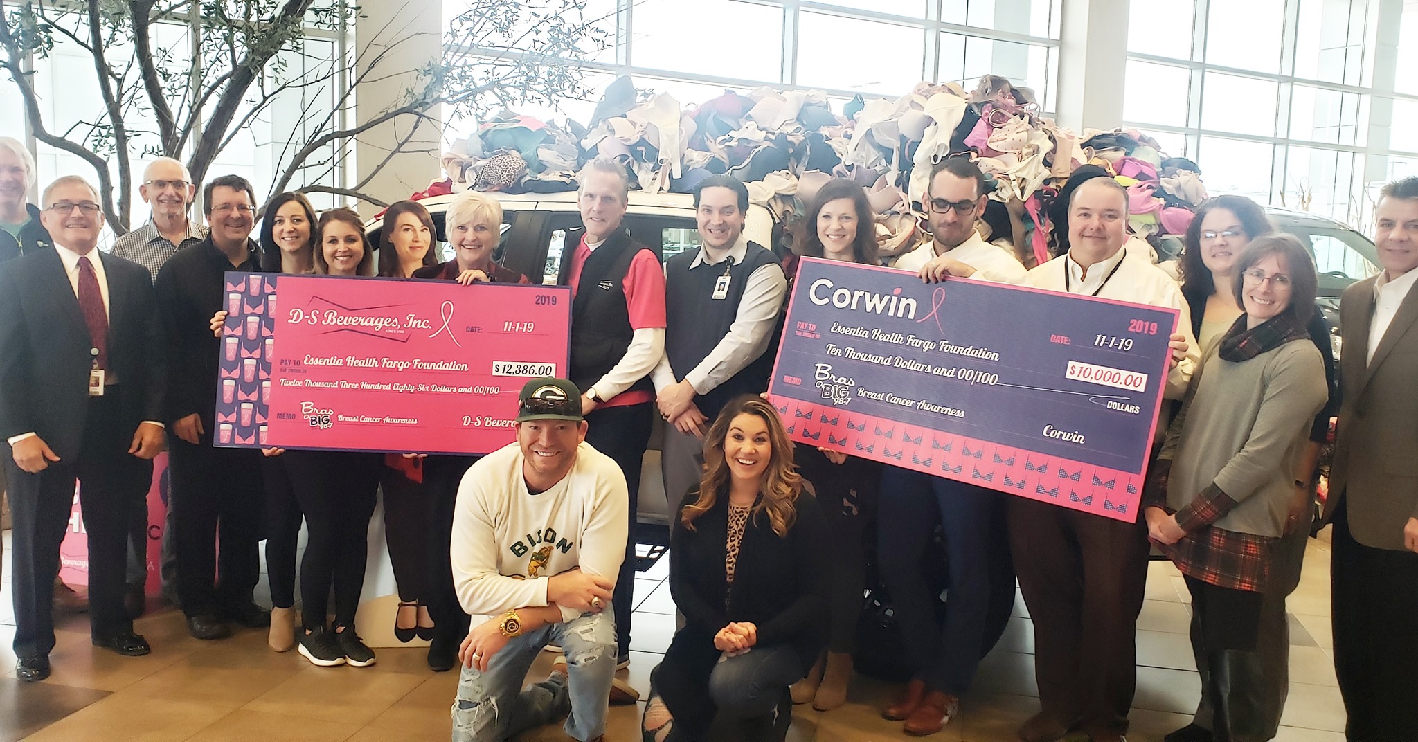 "We just wrapped our 4th annual 'Bras on BIG 98.7!' We collected Bras all month, had sponsors donate money for each bra we got! We raised about $23,000 for local women fighting breast cancer. Yes, that’s a truck, buried with bras!"