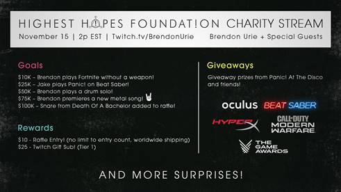 Brendon Urie's Charity 'Highest Hopes Foundation' On Twitch Stream