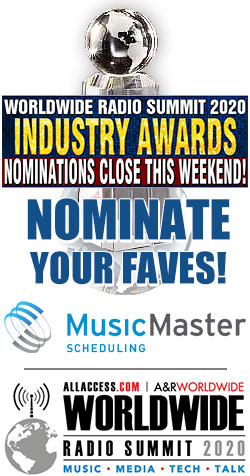 And the winners will be announced at the WORLDWIDE RADIO SUMMIT 2020 INDUSTRY AWARDS LUNCHEON at 1P on FRIDAY, MARCH 27th at CASTAWAY in BURBANK, sponsored by MUSICMASTER!