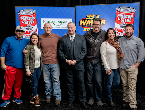 BEASLEY Rock WMMR/PHILADELPHIA's annual "PRESTON & STEVE'S CAMP OUT FOR HUNGER" brought in a record 2.6 million pounds of food and $200,000 in donations for hunger relief organization PHILABUNDANCE. PRESTON ELLIOT and STEVE MORRISON camped out DECEMBER 2-6 in the parking lot at the PHILADELPHIA SPORTS COMPLEX's XFINITY LIVE!, adjacent to WELLS FARGO CENTER (home of the 76ERS and FLYERS) and across the street from the PHILLIES' CITIZENS BANK PARK and the EAGLES' LINCOLN FINANCIAL FIELD, collecting donations from listeners as they have every holiday season since 1998.