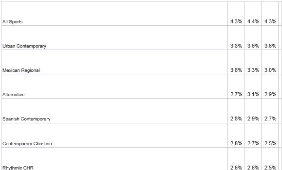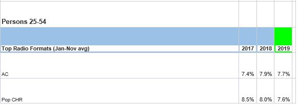 - Among younger listeners, Top 40 and Urban Contemporary are most popular choices, while AC and Pop CHR are the top two genres among the 25-54 crowd.
