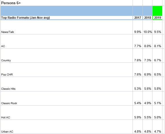 - At a formatic level, the News/Talk format remains the most popular genre on the radio, as it has for nearly a decade.