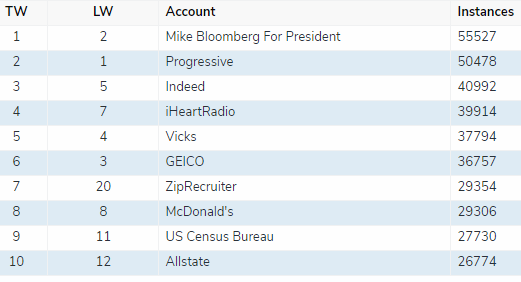 MEDIA MONITORS has the data for the week of FEBRUARY 24, 2020 - MARCH 1, 2020.