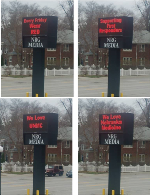 GM MARK SHECTERLE said, “This was a no brainer. Once I received the call from UNMC asking for our support for their employees and all health care workers I immediately said yes. These incredible individuals are putting their life on the line to save us. It is the least we could do, and I could not be more proud of how my team has rallied around this cause. It’s incredible.”The UNMC HOUSE OFFICERS ASSOCIATION's Dr. PAUL AYLWARD, MD said, “The support of NRG MEDIA has been phenomenal, truly exceeding our expectations. They have become an integral part of achieving our goal of reaching the entire community. Seeing the red every week means so much to all of our frontline health care workers. We can feel the support each time someone posts a picture.”