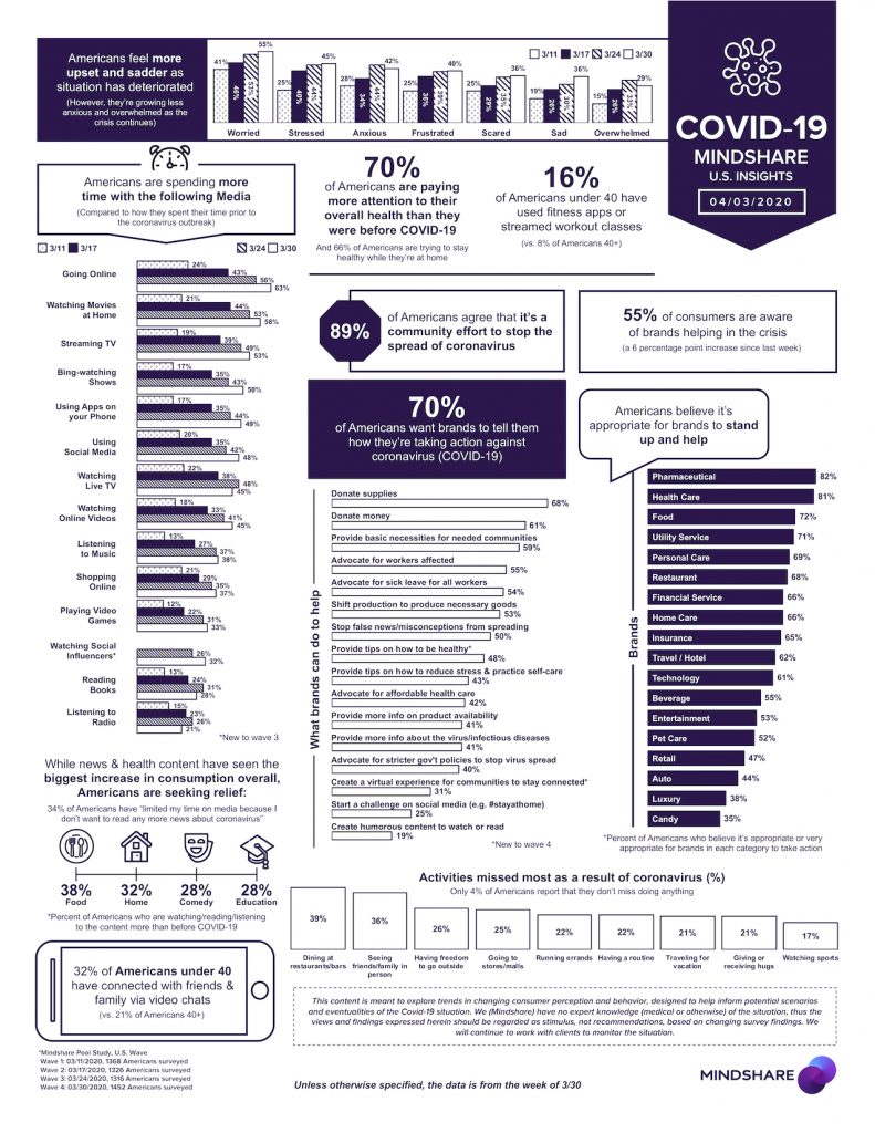 The report drills into a variety of other changes that the anxiety, social isolation, and life and work disruptions the health crisis is having on Americans' use of media and their relationship with brand marketing.