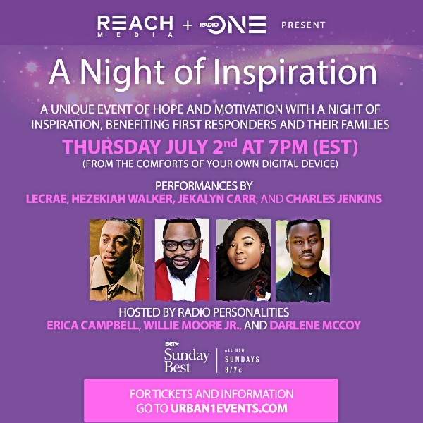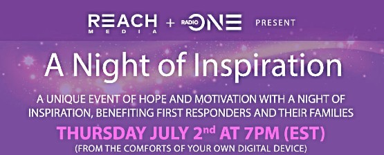 So many have given so much of themselves and REACH MEDIA and RADIO ONE team up to present a night to honor the community and benefit first responders who have endured and helped so many through the COVID-19 pandemic. "A Night of Inspiration” will take place on THURSDAY, JULY 2nd at 7p (EST) with a portion of the proceeds going to first responders or their families who have been adversely impacted by COVID-19.