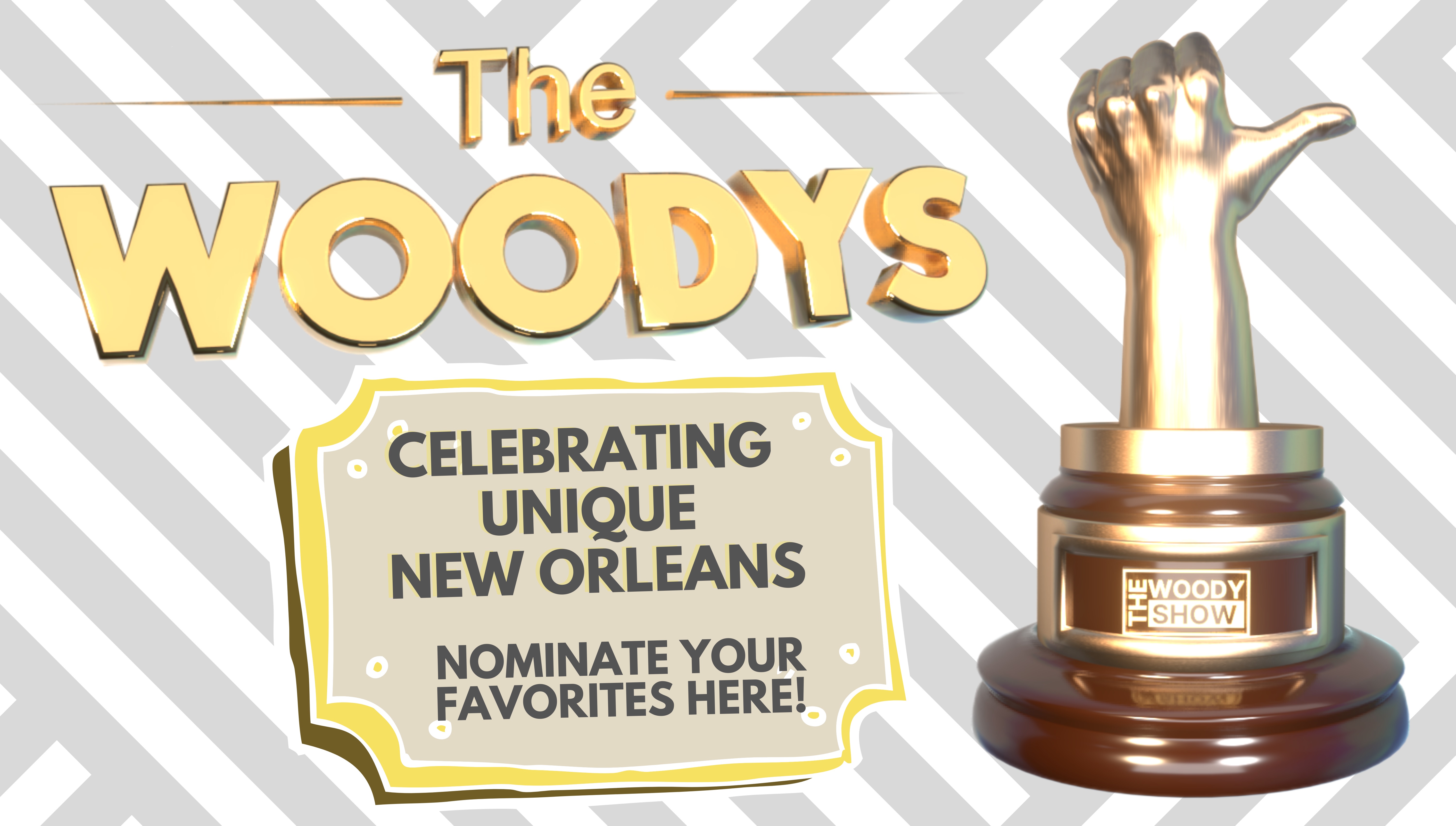 Nominations began TODAY for THE WOODYS in NEW ORLEANS though SEPTEMBER 19th in the following categories: