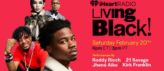 The nationwide on-air celebration will feature the first-ever “iHEARTRADIO LIVING BLACK!” special event with performances by RODDY RICCH, 21 SAVAGE, JHENÉ AIKO, KIRK FRANKLIN, and many other artists from Hip-Hop, R&B and Gospel.