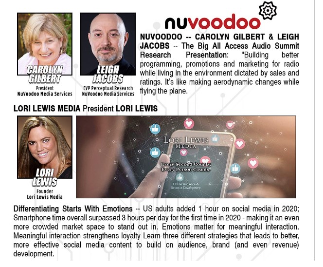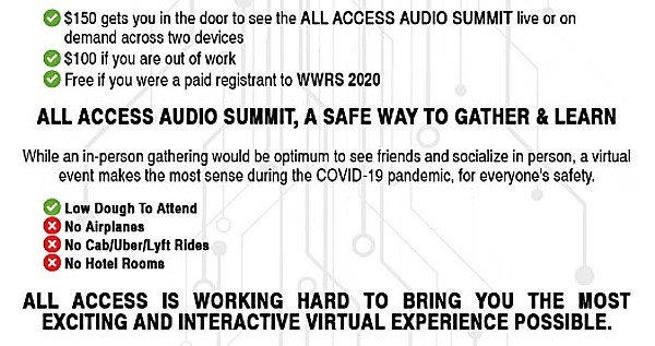 It's the kickoff session for THE ALL ACCESS AUDIO SUMMIT, set for WEDNESDAY, APRIL 21st and THURSDAY, APRIL 22nd, exclusively on the NUVOODOO CONFERENCE CLOUD for you to view right from your home or office ... or anywhere you like, live or on-demand, and will be available to you across two devices of your choice. The ALL ACCESS AUDIO SUMMIT agenda is being assembled as you read this, and looks to have 15+ sessions over the two days. More sessions will be announced this week.