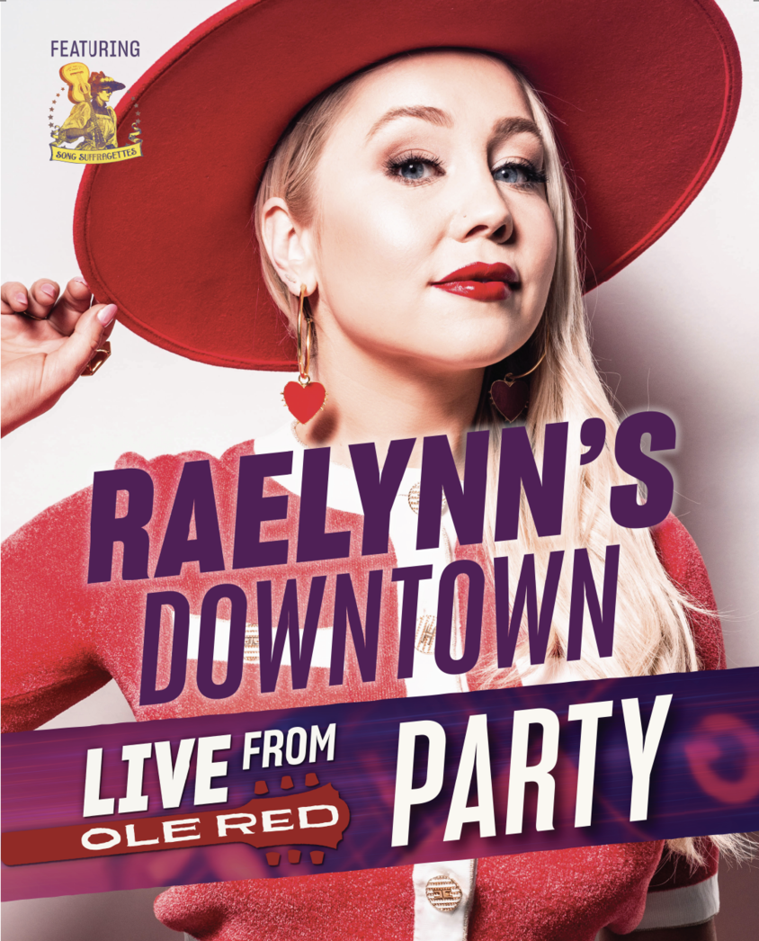 ROUND HERE RECORDS' RAELYNN will kick off her first ever honky-tonk residency in downtown NASHVILLE, "RAELYNN's Downtown Party Live From OLE RED," on WEDNESDAY, MAY 26th. The show will run weekly through JULY 7th and benefit the CMA FOUNDATION and ACM LIFTING LIVES COVID-19 RESPONSE FUND. Each show will be opened by a different pairing from NASHVILLE's female singer-songwriter collective, SONG SUFFRAGETTES.