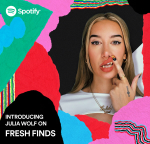 The four artists that join the initial ‘class’ of the FRESH FINDS program are WALLICE, UNUSUAL DEMONT, JULIA WOLF and EKKSTACY. These up-and-comers will be provided with a substantial suite of opportunities, including education and access to resources, creative collaborations with other artists and marketing support, with the four artists featured in a major campaign on-and-off platform, as well as taking part in a social media documentary series, "SPOTIFY Clips," and more.