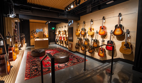 GIBSON GARAGE is designed for the seasoned professional musician, a casual guitar player, a beginner, or simply a music fan. The venue includes a Custom Shop to build guitars, historical and celebrity memorabilia displays, a Repair and Restoration Center, and a public retail shopping experience with GIBSON, GIBSON ACOUSTIC, GIBSON CUSTOM SHOP, EPIPHONE, KRAMER, MESA/BOOGIE, and KRK. And it has a state-of-the-art stage for live and virtual livestreaming concert performances.
