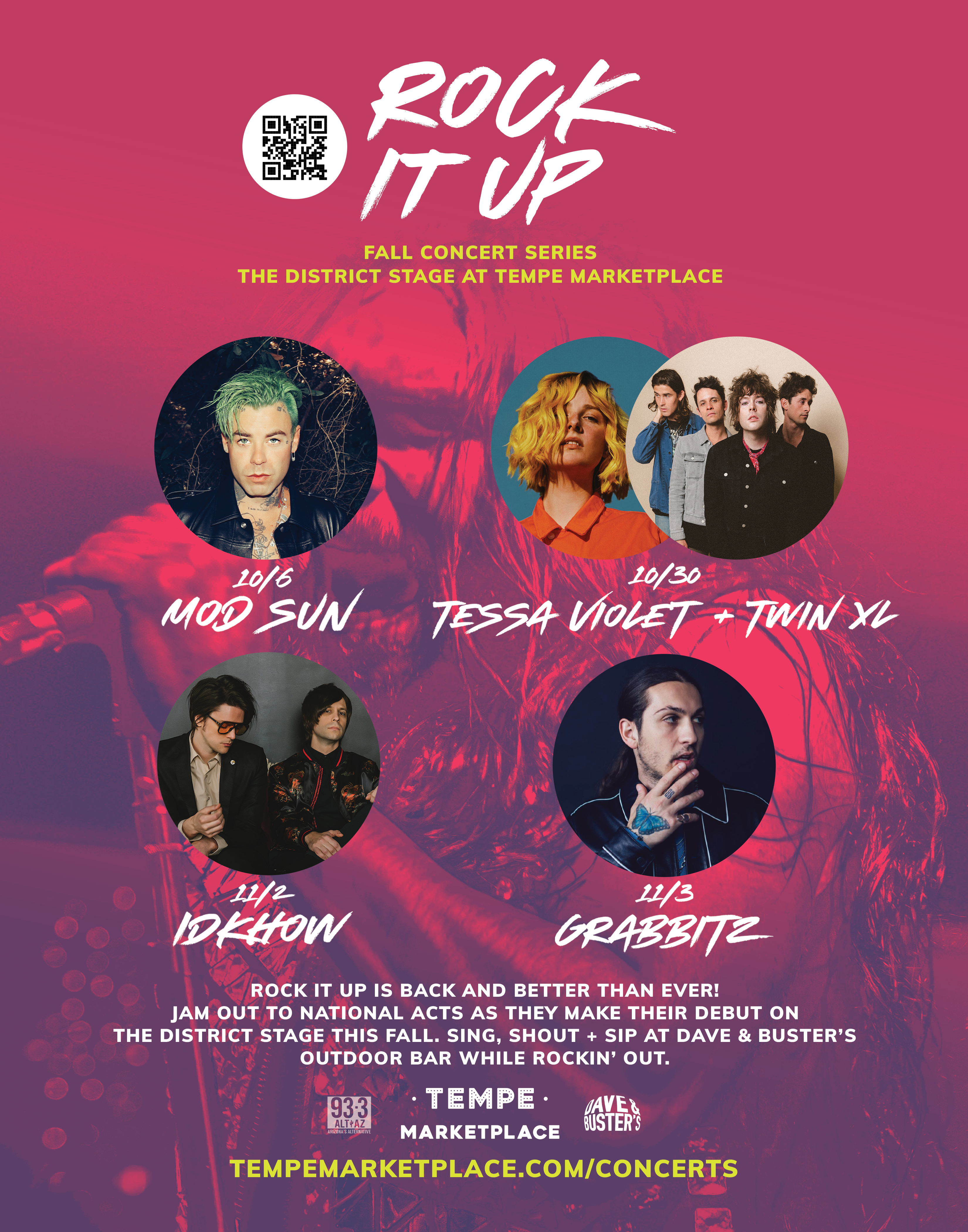 HUBBARD Alternative KDKB (ALT AZ 93-3)/PHOENIX announces the return of its “ROCK IT UP CONCERT SERIES” with four totally free concerts for ALT AZ listeners this fall on the DISTRICT STAGE at TEMPE MARKETPLACE.