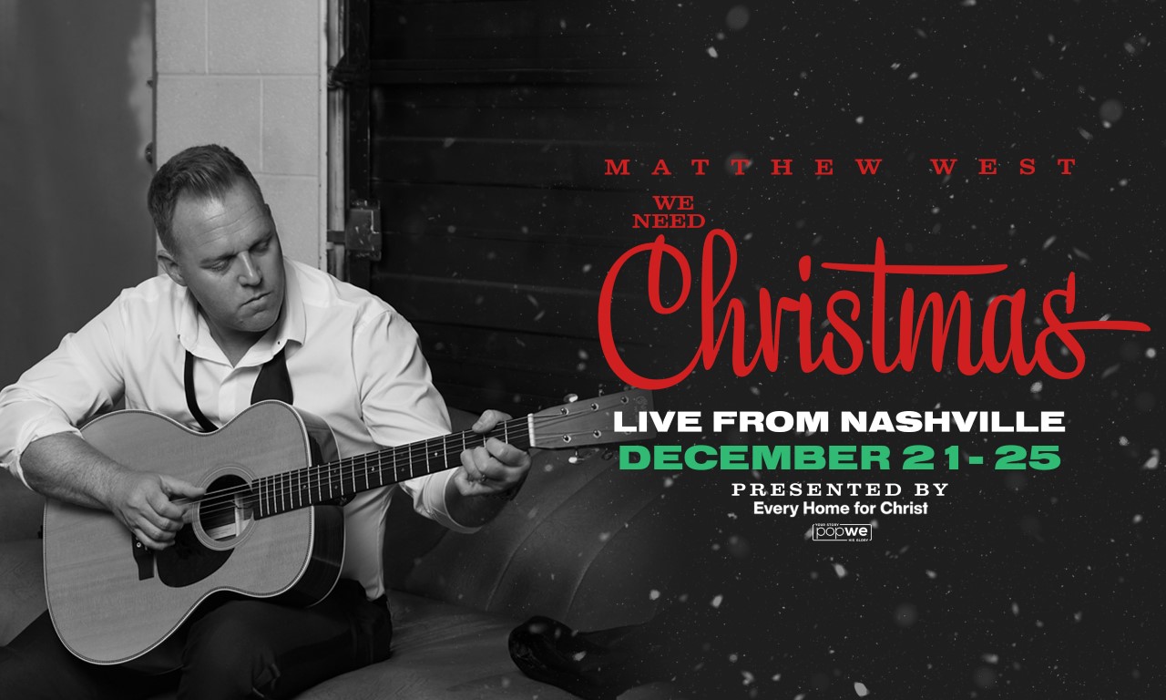 MATTHEW WEST is gathering his band and friends to celebrate the birth of JESUS by spreading some musical cheer right into the living rooms of homes all across the world. The We Need CHRISTMAS livestream events will take place over five nights during the (12/21-25) week, presented by EVERY HOME FOR CHRIST and produced by STORY HOUSE COLLECTIVE and 48LIVE.