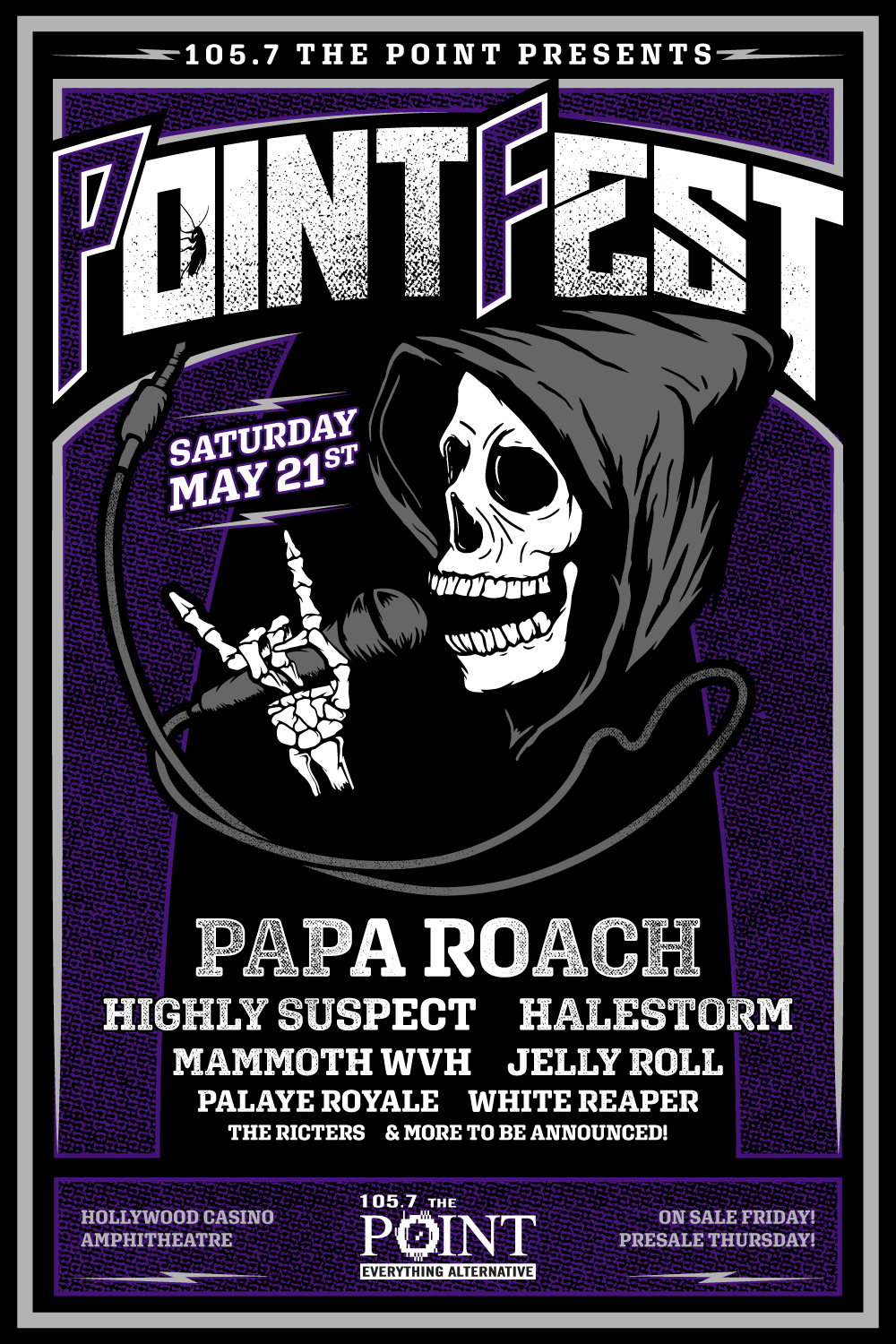 HUBBARD Alternative KPNT (105.7 THE POINT)/ST. LOUIS has announced “POINTFEST” will be SATURDAY, MAY 21st at HOLLYWOOD CASINO AMPHITHEATRE featuring PAPA ROACH, HIGHLY SUSPECT, HALESTORM, MAMMOTH WVH, JELLY ROLL, PALAYE ROYALE, WHITE REAPER, THE RICTERS, and more to be announced.