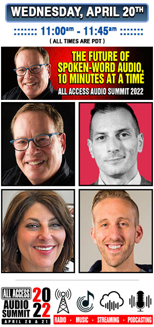 Check out the ALL ACCESS AUDIO SUMMIT AGENDA, here!Make plans to join ALL ACCESS for this must-attend virtual event, ALL ACCESS AUDIO SUMMIT 2022, set for 4/20 & 4/21/22, that provides the industry with a platform where we can creatively discuss the many elephants in the room – and make real positive changes.