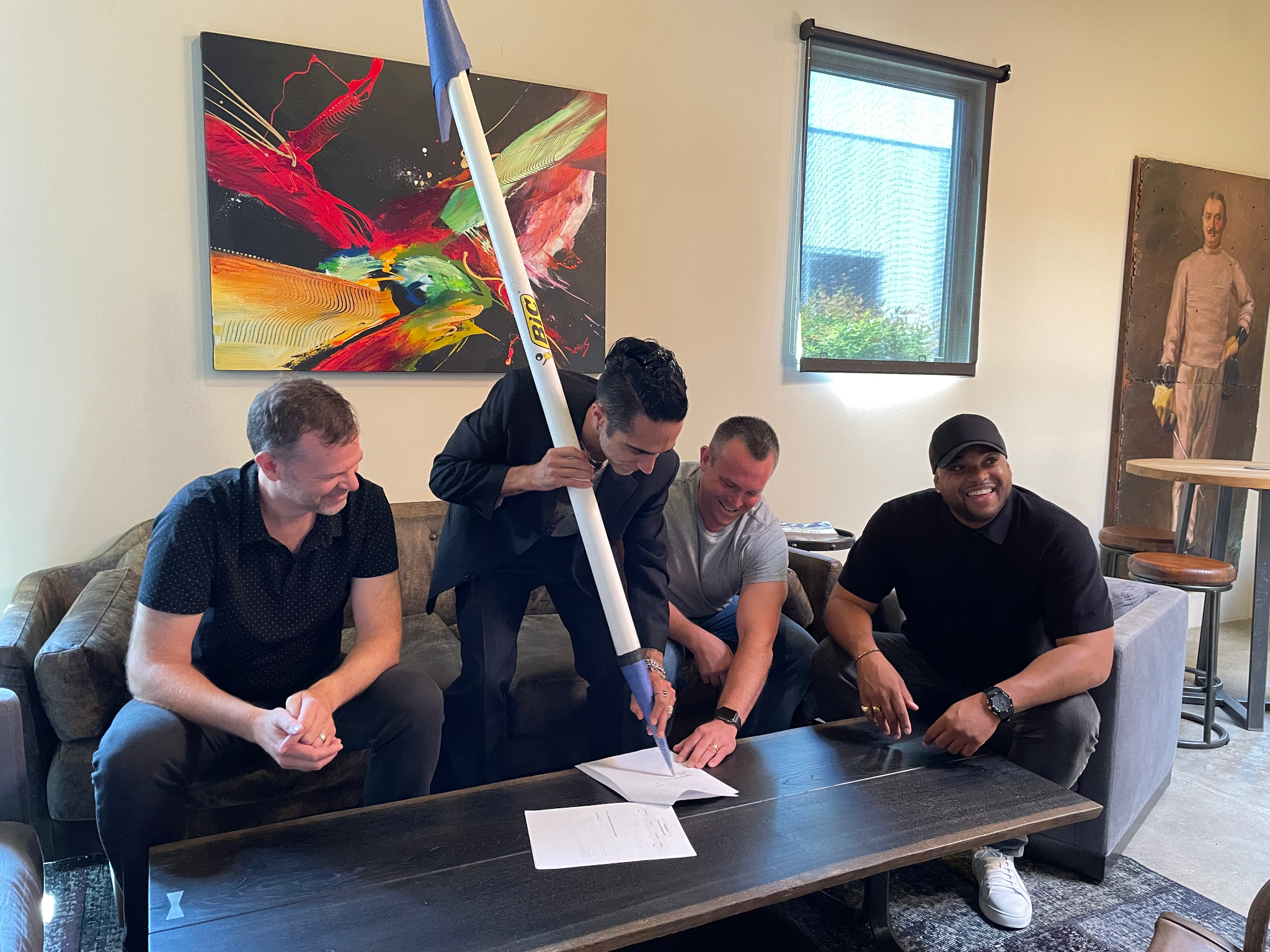 From Left to Right: TYLER BACON (Pres. & CEO at POSITION MUSIC), DRU DECARO, MARK CHIPELLO (VP, Head/A&R, POSITION MUSIC), DELMAR POWELL (VP/A&R, POSITION MUSIC).