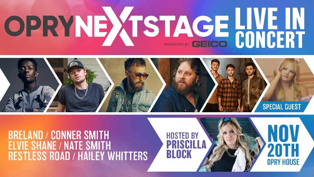 The second annual "OPRY NextStage Live In Concert" is set for NOVEMBER 20th at the GRAND OLE OPRY HOUSE in NASHVILLE. Joining SMITH onstage will be BRELAND, RESTLESS ROAD, ELVIE SHANE and CONNER SMITH, along with special appearances from "NEXTSTAGE" alumni HAILEY WHITTERS and event host PRISCILLA BLOCK.