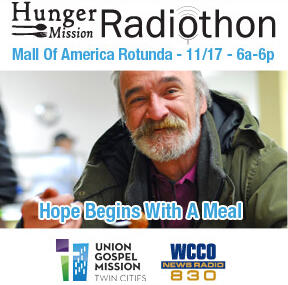 AUDACY News-Talk WCCO-A/MINNEAPOLIS raised over $333,000 for UNION GOSPEL MISSION TWIN CITIES in its 20th annual HUNGER MISSION RADIOTHON NOVEMBER 17th at the MALL OF AMERICA in BLOOMINGTON. This year's donations raised the overall amount taken in by the event to over $4.1 million since 2003.