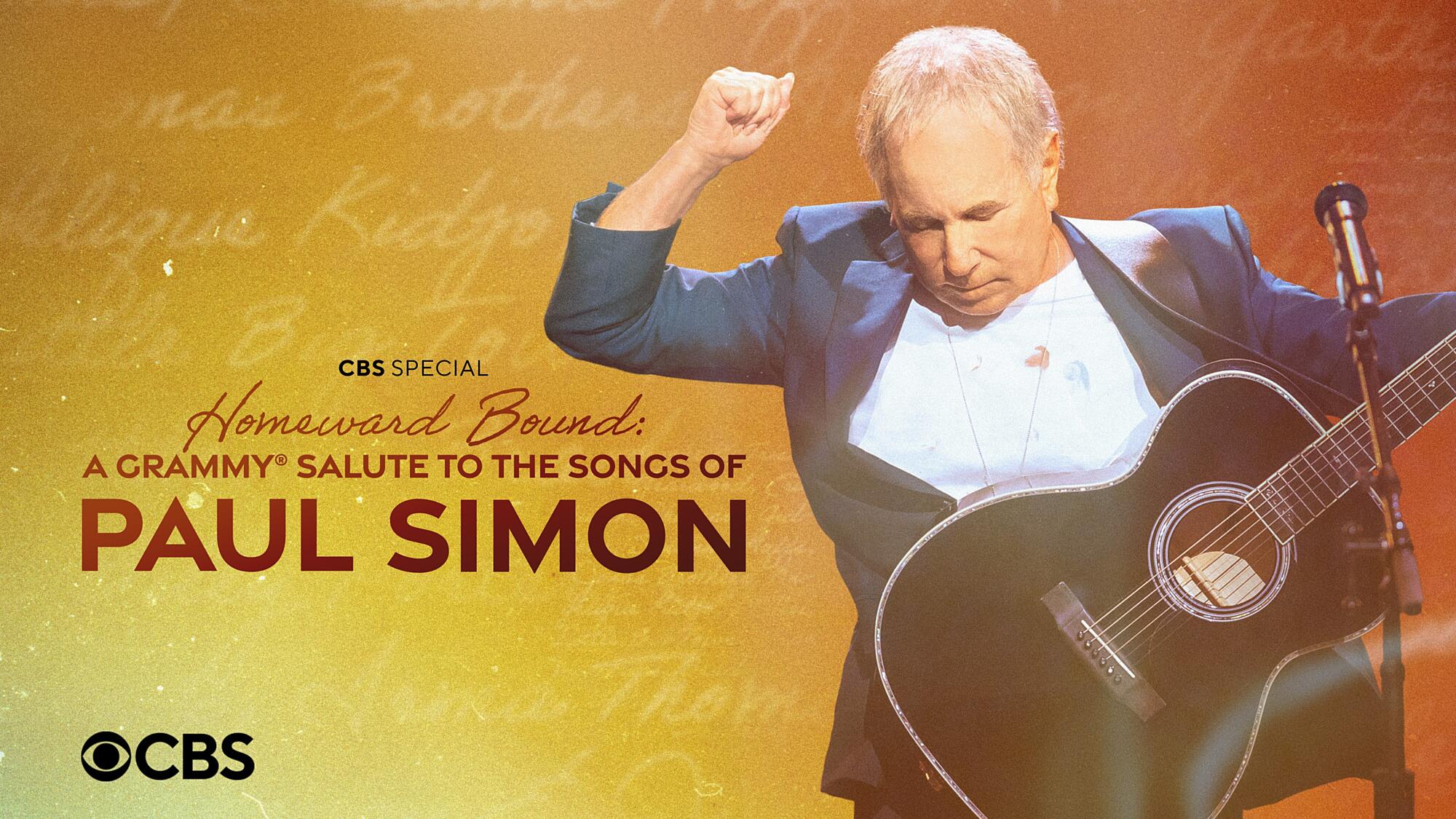CBS will air HOMEWARD BOUND: A GRAMMY SALUTE TO THE SONGS OF PAUL SIMON on WEDNESDAY, DECEMBER 21st at 9p (ET/PT). The special will feature special performances by GARTH BROOKS and TRISHA YEARWOOD, ERIC CHURCH, RHIANNON GIDDENS, SUSANNA HOFFS, JONAS BROTHERS, ANGÉLIQUE KIDJO, LEDISI, LITTLE BIG TOWN, DAVE MATTHEWS, BRAD PAISLEY, BILLY PORTER, STING, TAKE 6, IRMA THOMAS, SHAGGY and JIMMY CLIFF, TROMBONE SHORTY, and STEVIE WONDER, who will all pay homage to SIMON’s legendary career.